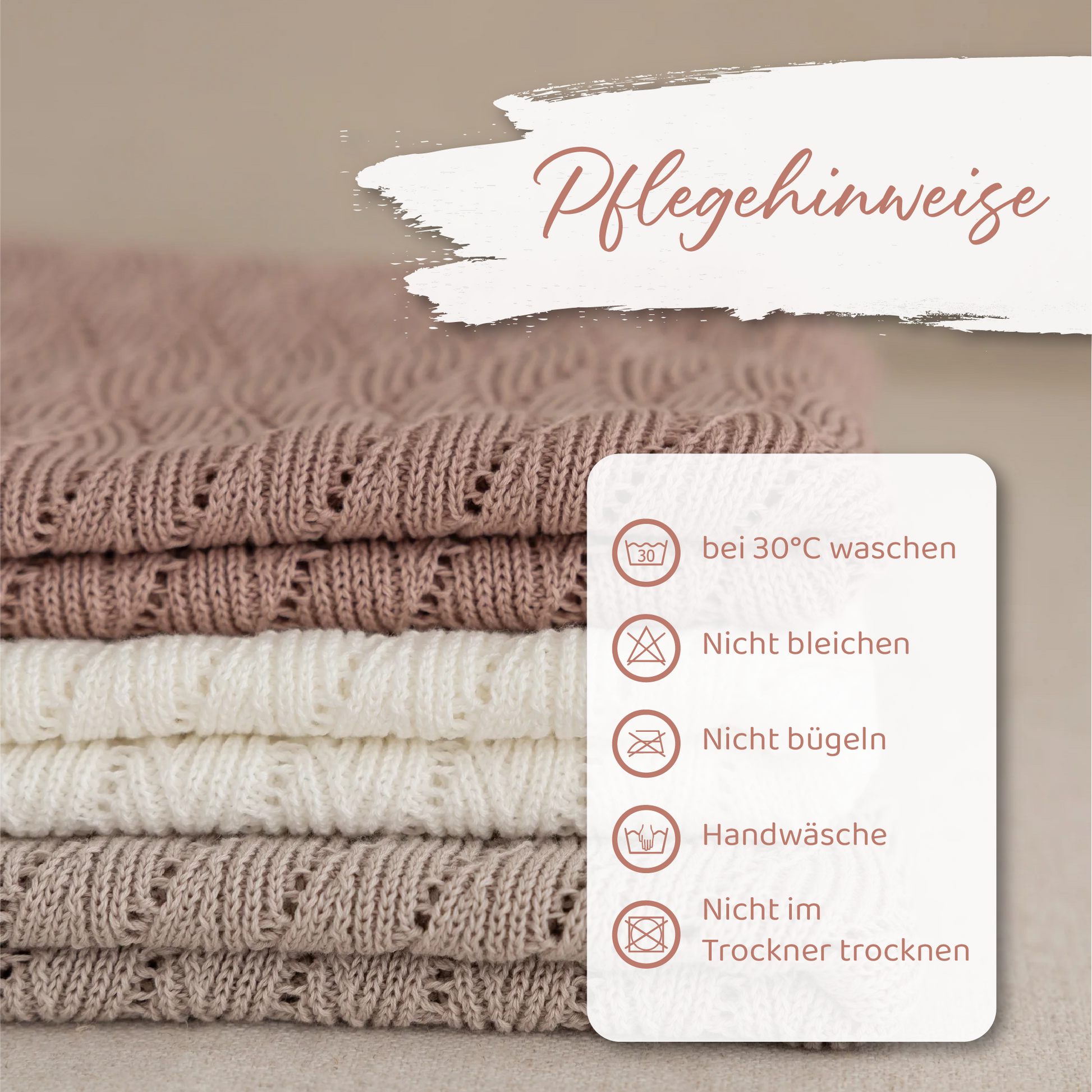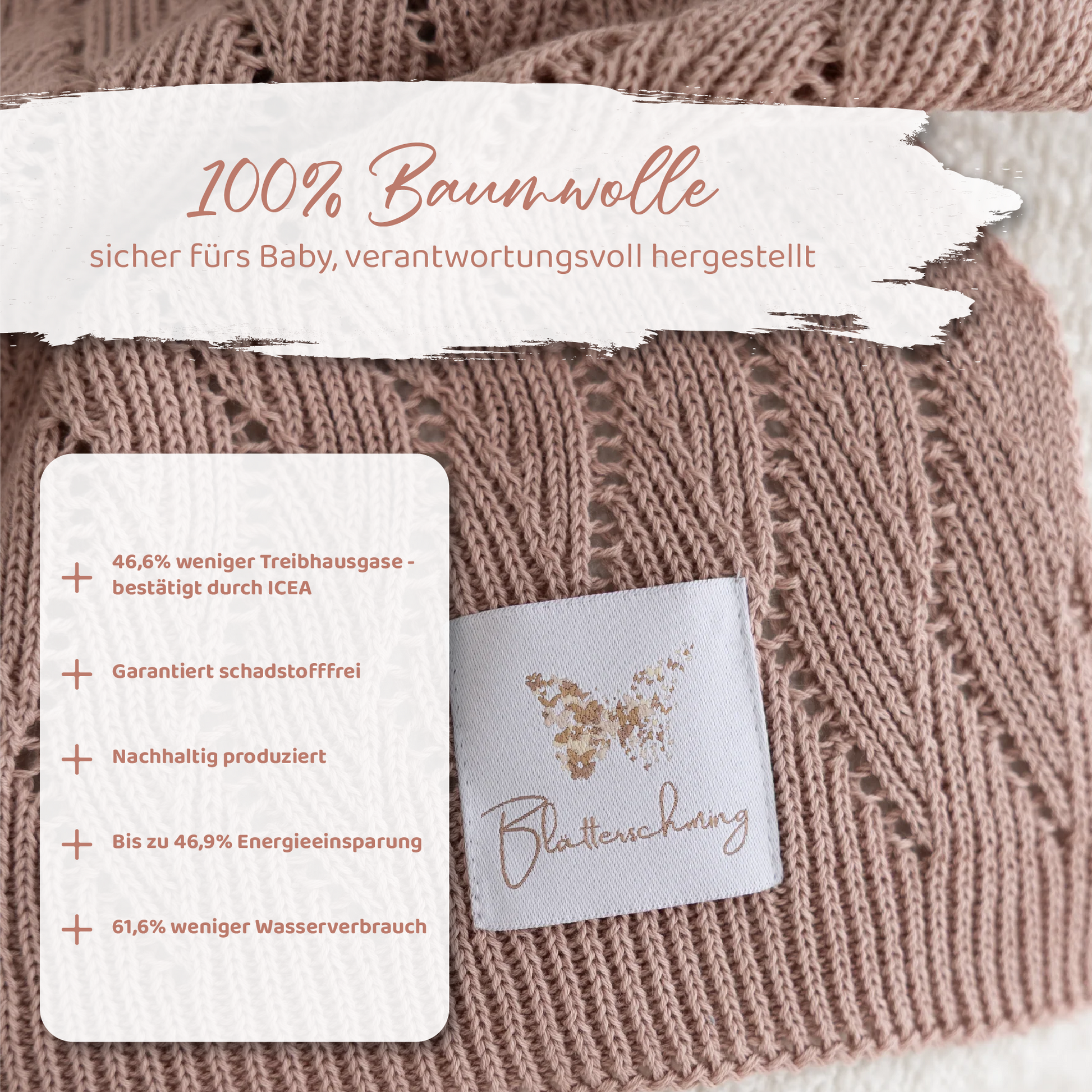 Baumwolle ist seit Generationen der Klassiker für Babytextilien – und das aus gutem Grund. Sie ist atmungsaktiv, hautfreundlich und besonders pflegeleicht. Selbst feinste Baumwollgewebe nehmen Feuchtigkeit zuverlässig auf, halten die Haut deines Babys trocken und verhindern so Reizungen. Zudem ist Baumwolle sehr strapazierfähig und behält auch nach vielen Wäschen ihre Form und Weichheit, sodass die Lieblingsdecke oder der Strampler lange nutzbar bleibt.